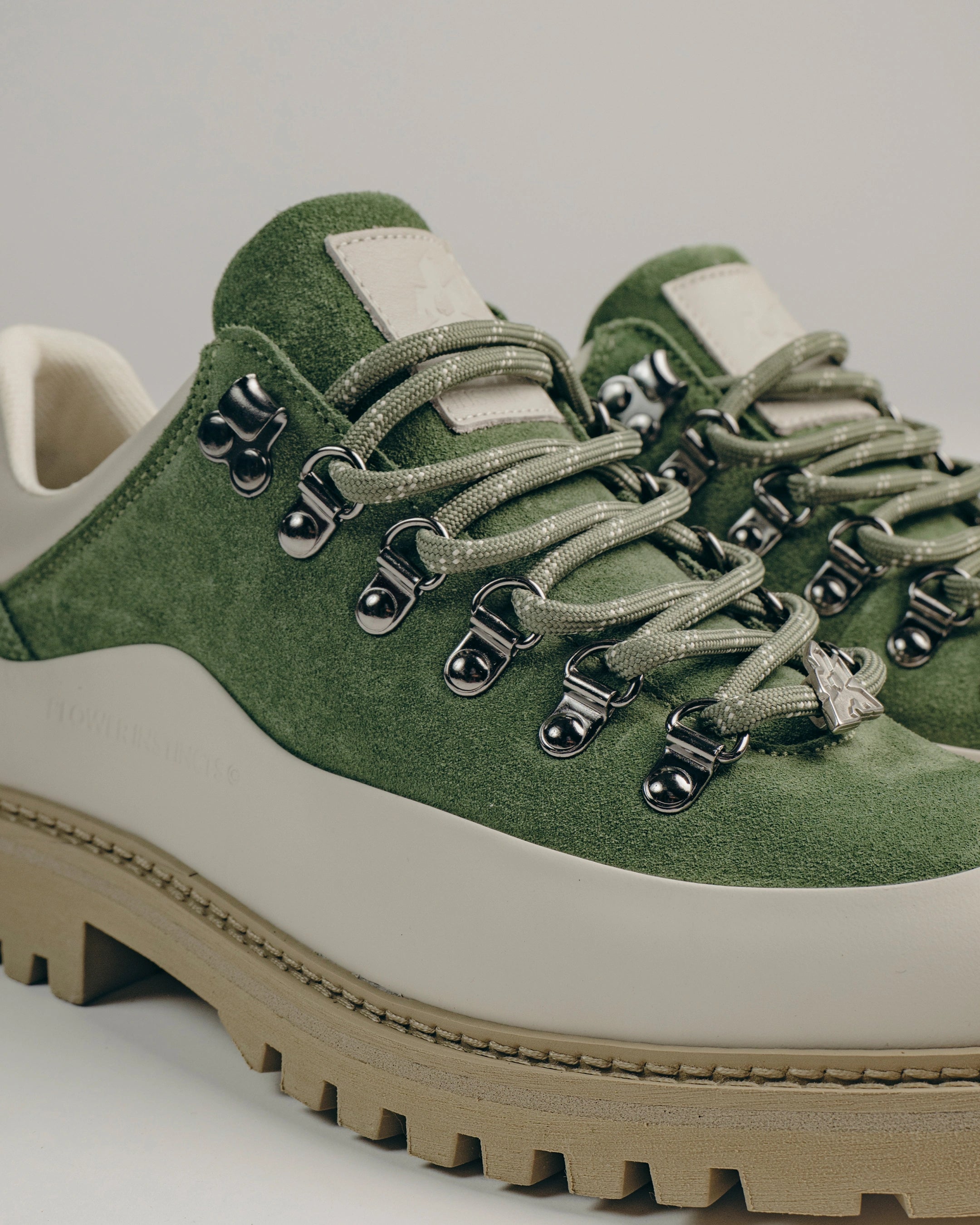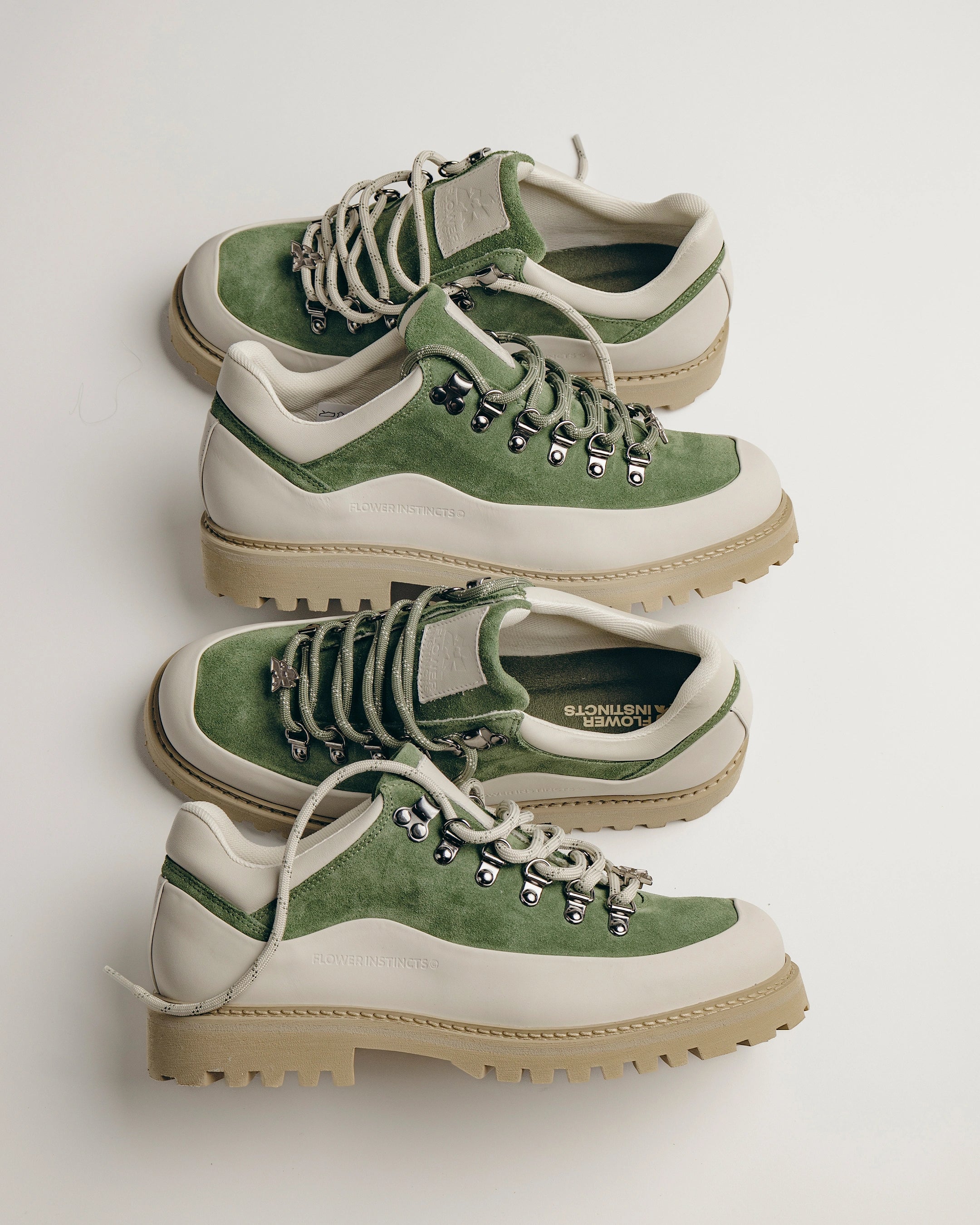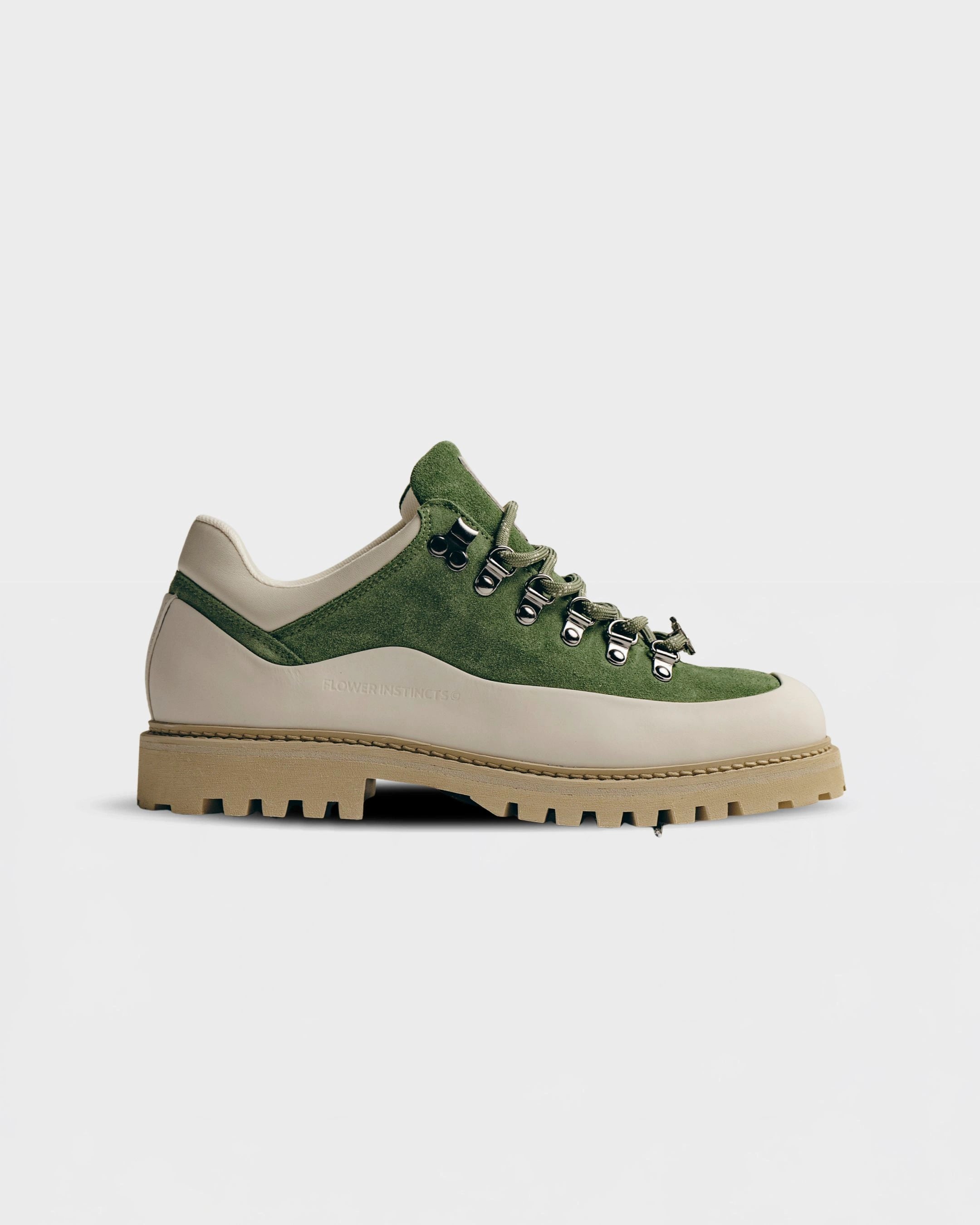 The Booted Goat Green & Beige draws inspiration from a timeless, rugged silhouette infused with Flower Instincts identity.