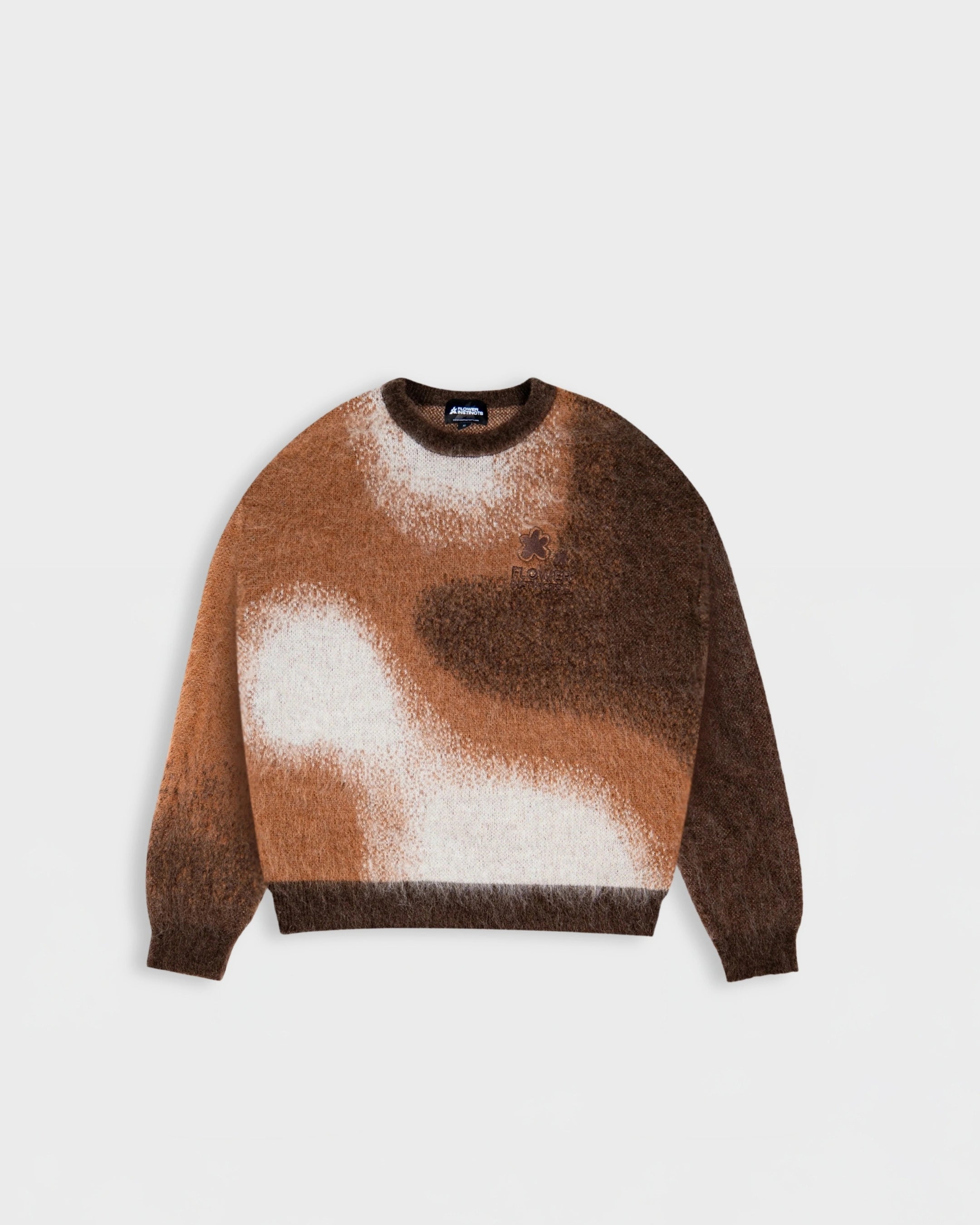 Brushed mohair crewneck with a soft, airy texture for ultimate comfort. The design is enhanced by bold contrasting shapes, adding a modern and graphic touch. Its relaxed fit ensures a fluid and effortless silhouette.