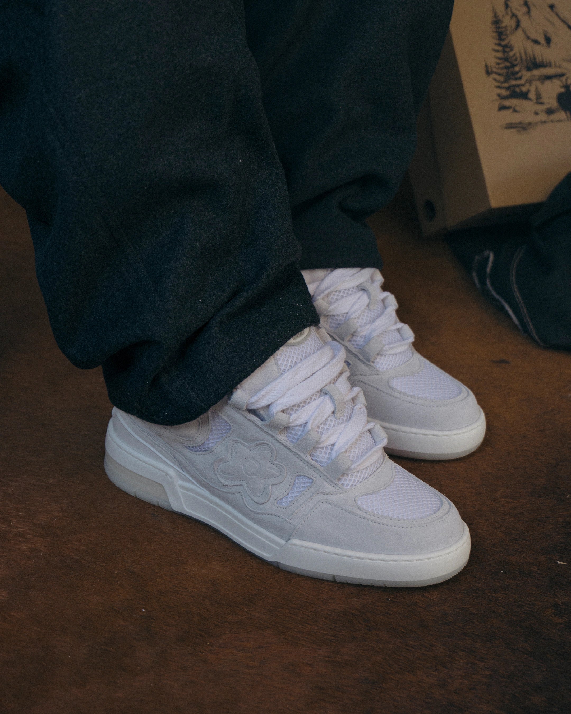 To maintain the quality and longevity of your Flower Instincts items, gently clean the leather areas using a soft, slightly damp cloth. Apply a sneaker-specific cleaner to ensure optimal care and long-lasting protection of the material.