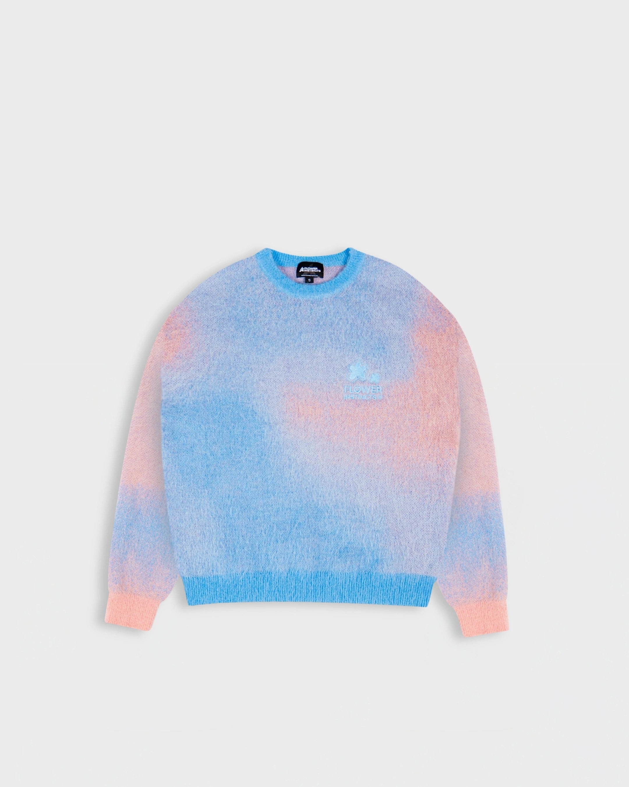 Brushed mohair crewneck with a soft, airy texture for ultimate comfort. The design is enhanced by bold contrasting shapes, adding a modern and graphic touch. Its relaxed fit ensures a fluid and effortless silhouette.