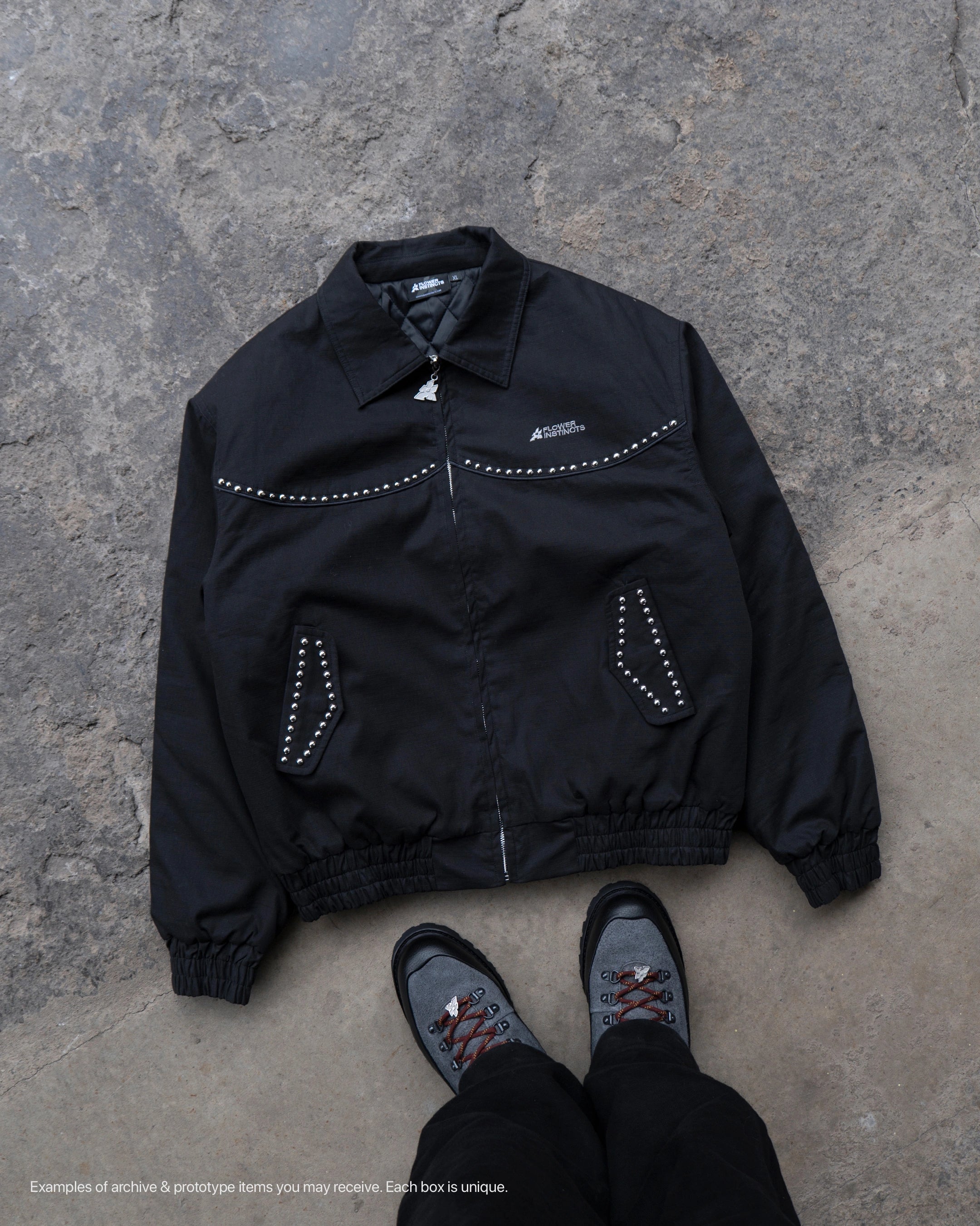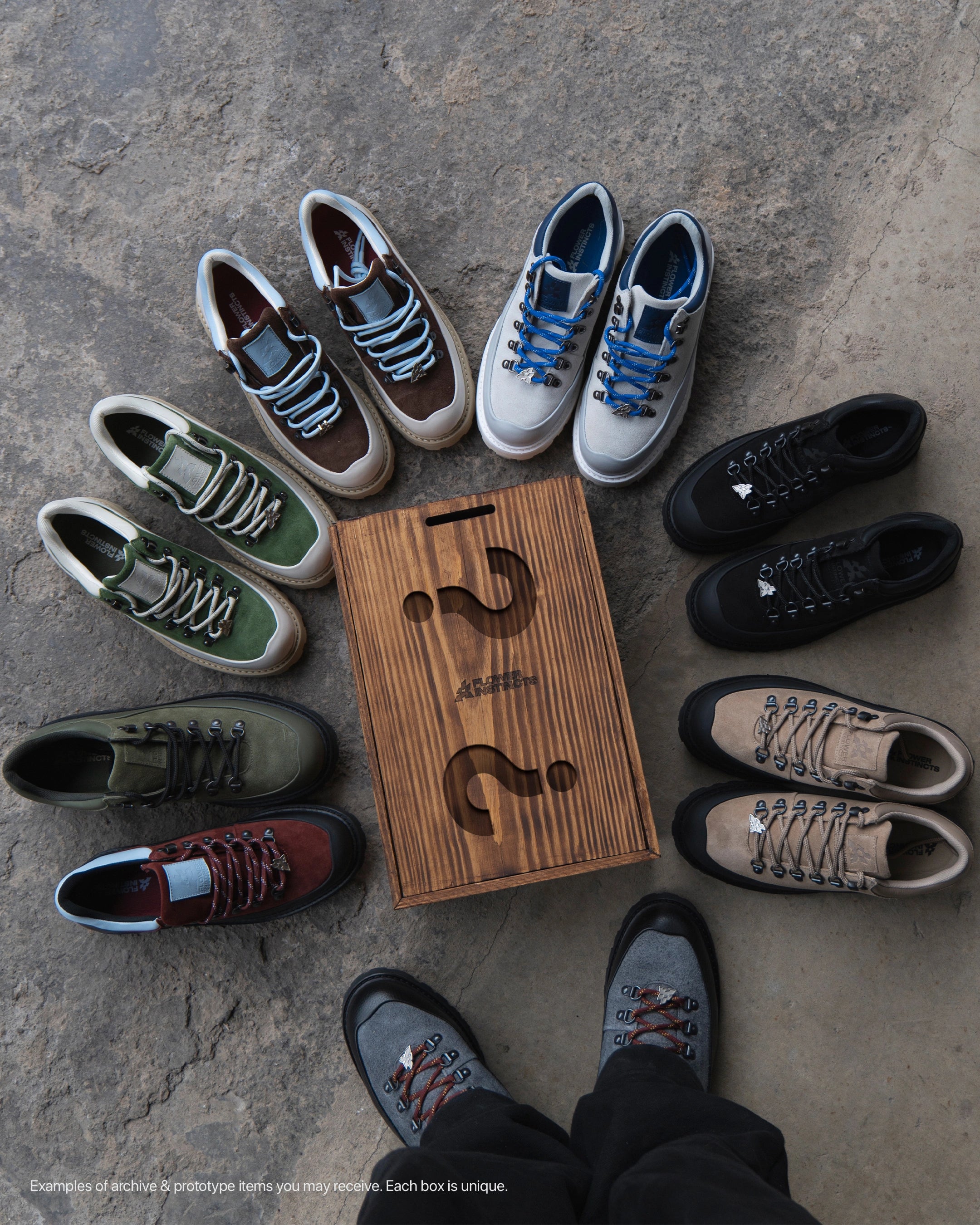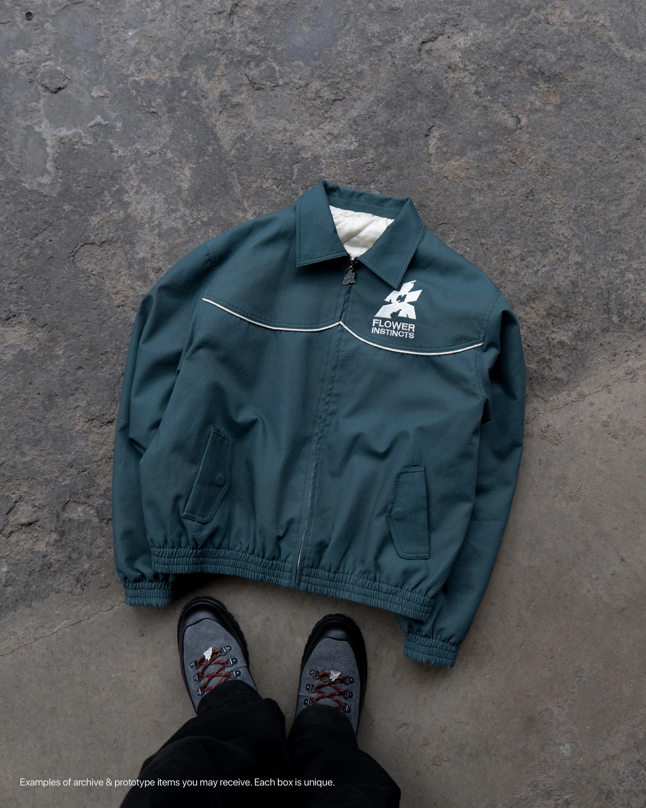 The Mystery Box – Tier 2 includes a premium Flower Instincts sneaker paired with a jacket or hoodie, curated directly from the FI studio archives.