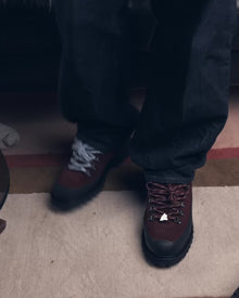 Fabriquée au Portugal par de façon éthiques, cette paire associe du daim rouge italien et du cuir noir haut de gamme pour une texture mate et profonde qui évolue magnifiquement avec le temps.