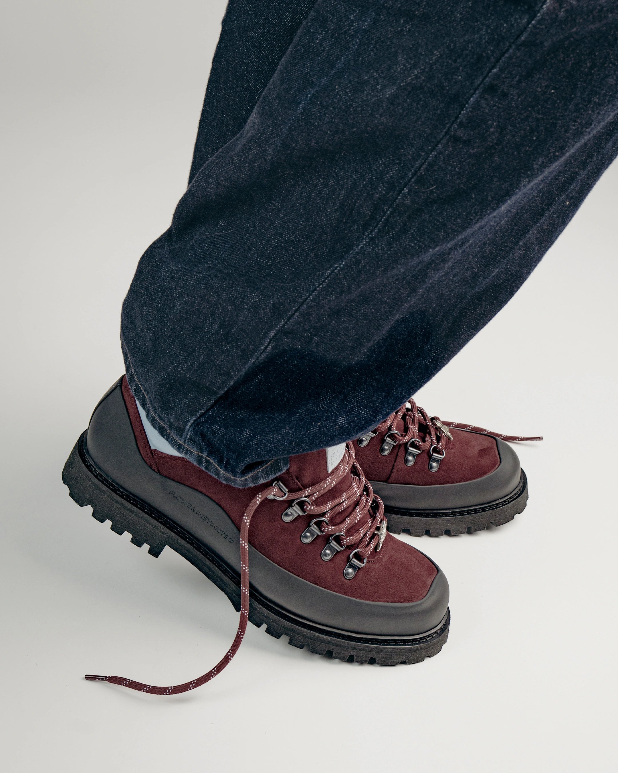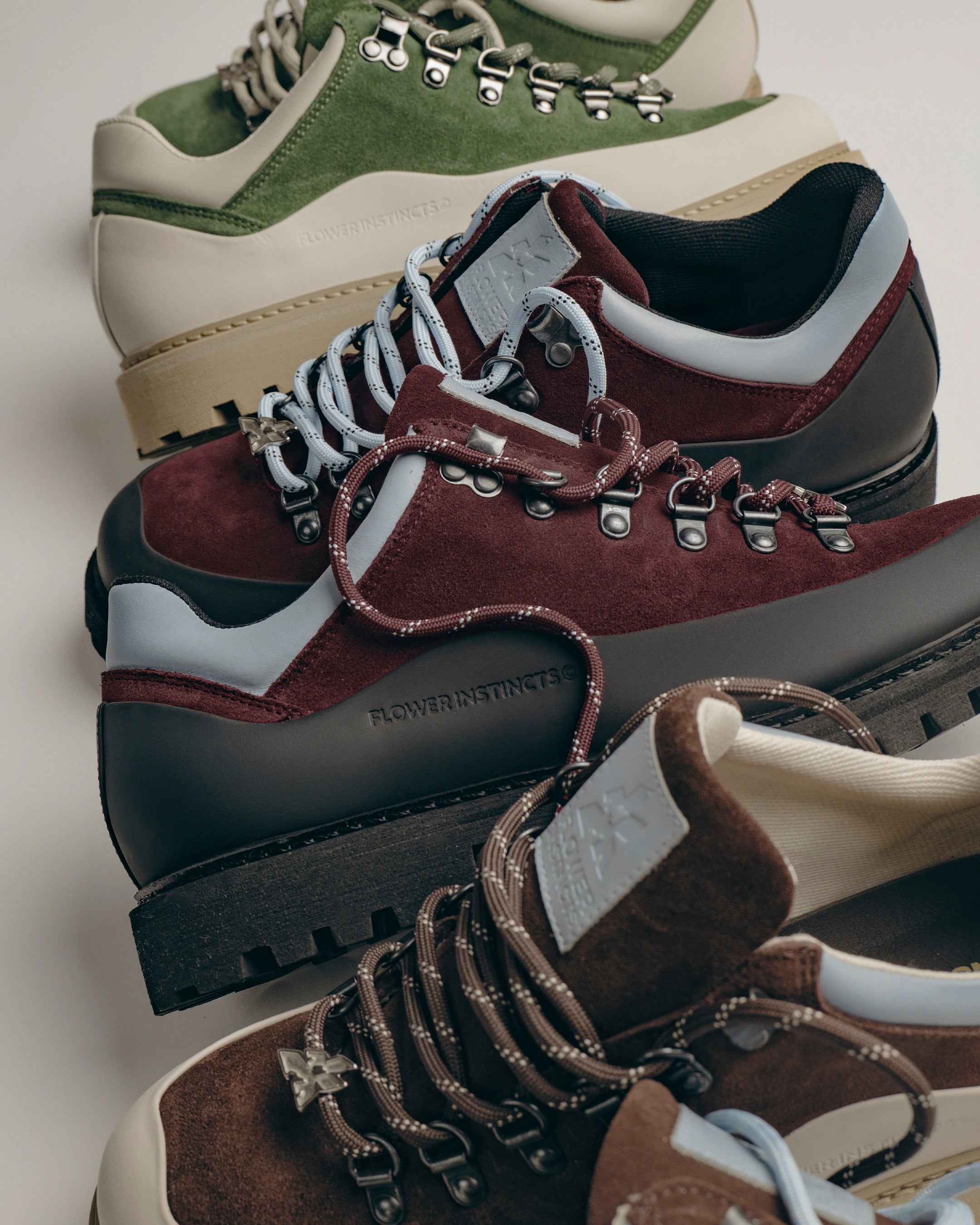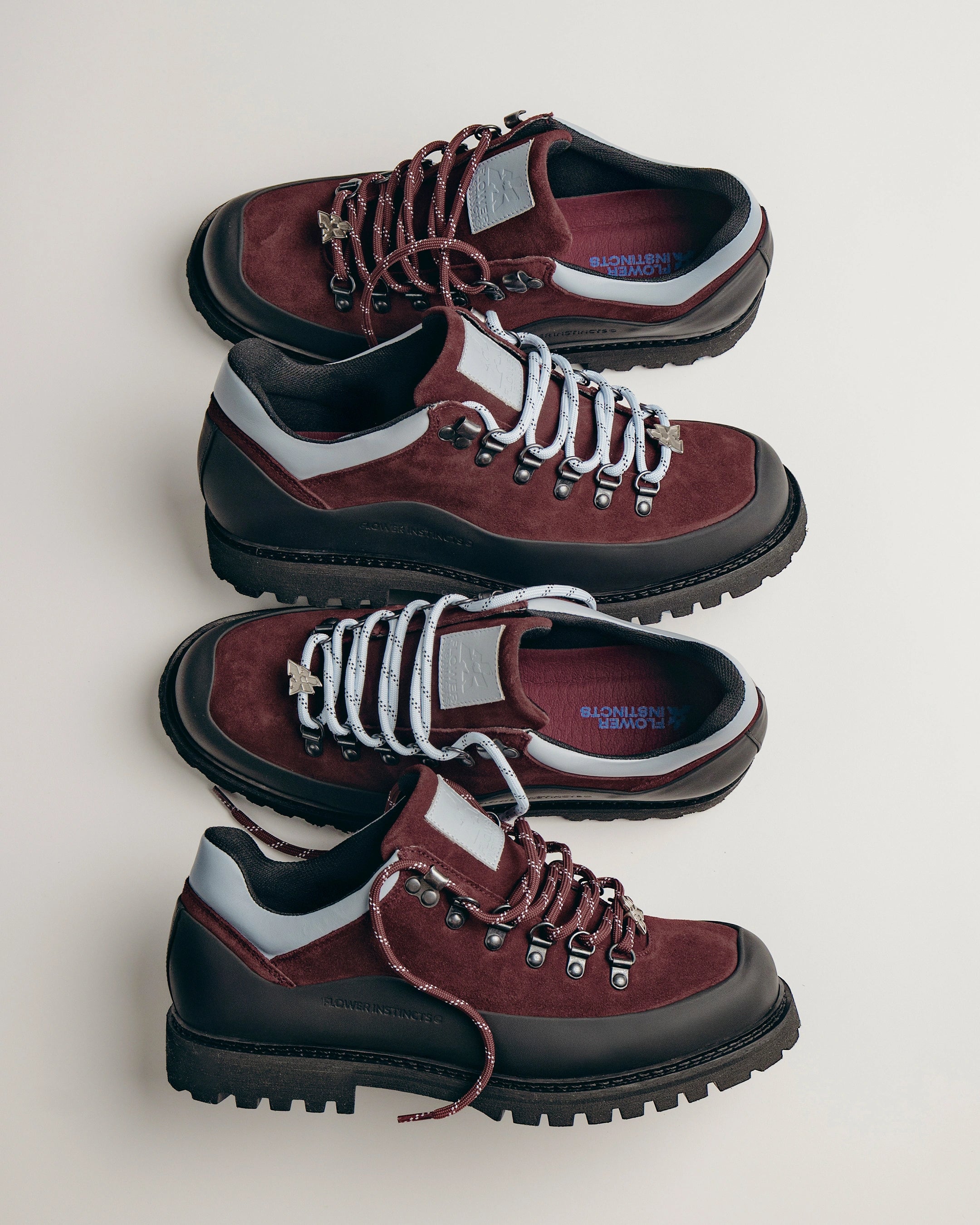 The Booted Goat Black & Red draws inspiration from a timeless, rugged silhouette infused with Flower Instincts identity. Crafted in Portugal by ethical manufacturers, the pair combines Italian red suede and black premium leather for a deep, matte texture that evolves beautifully over time.