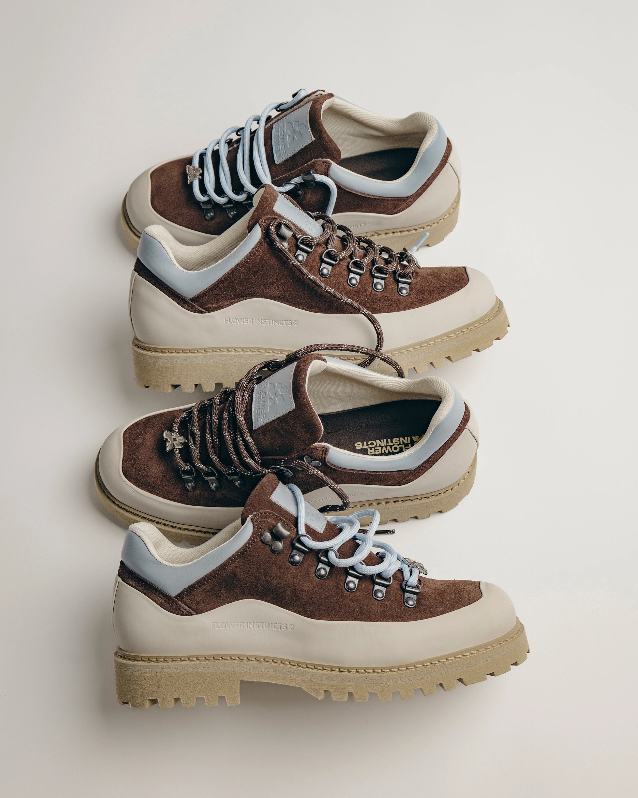 The Booted Goat Brown & Beige draws inspiration from a timeless, rugged silhouette infused with Flower Instincts identity.